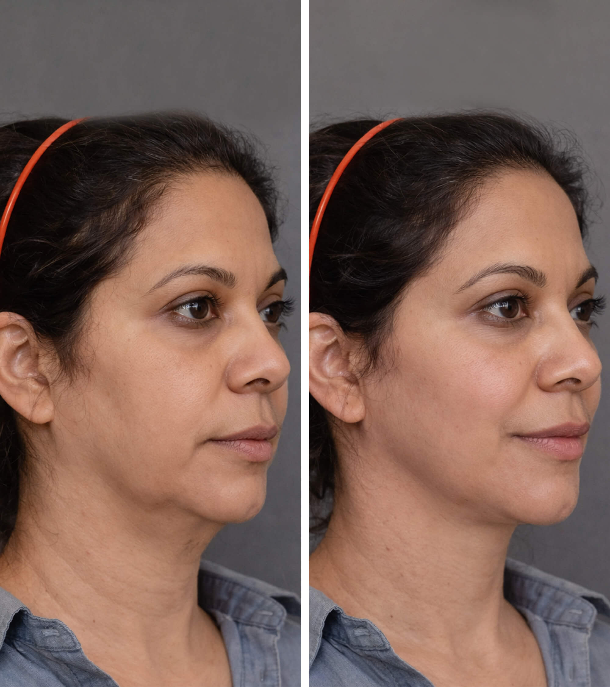 Jawline sculpting focuses on improving facial definition by addressing excess fat under the chin and along the jawline.